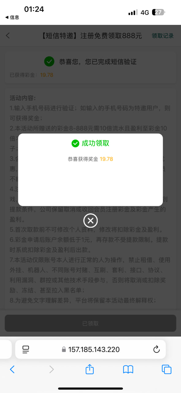 新用户注册绑定手机号,自行在优惠里面找到短信特邀,在名单秒送彩金,具体自测吧