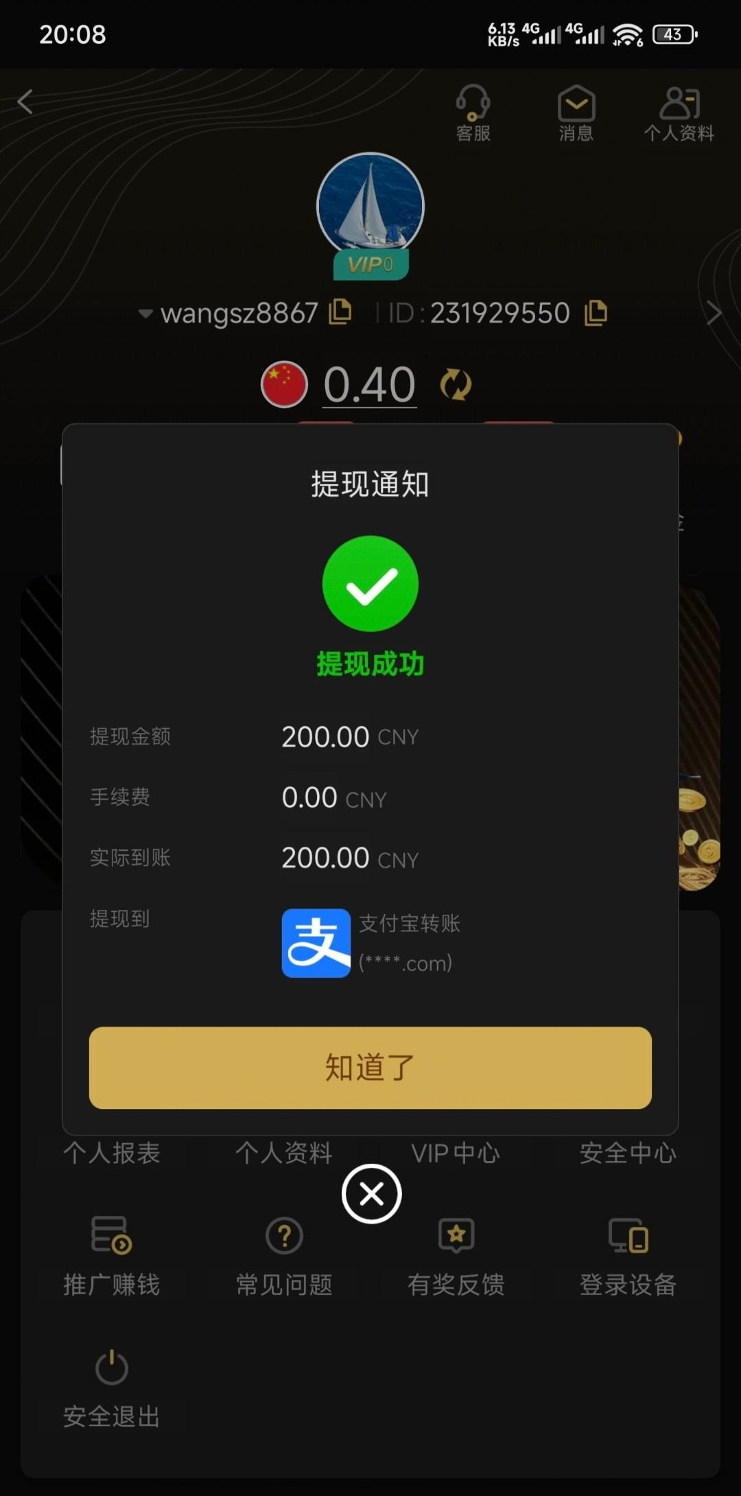 网址打开会有一个68余额的账号不能用,点切换账号注册一个联系客服说领电话彩金,发手机号给他,然后他会叫你下载APP截图给他就送了3倍水,碰瓷一下吧人多容易黄.已成功出款200