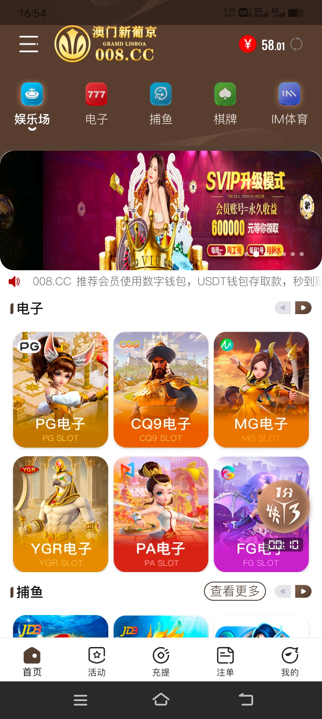 新葡京008.cc 本人送了58彩金 已到账 没玩过的无视即可 最后祝老哥们天天发大财 日日日狗庄