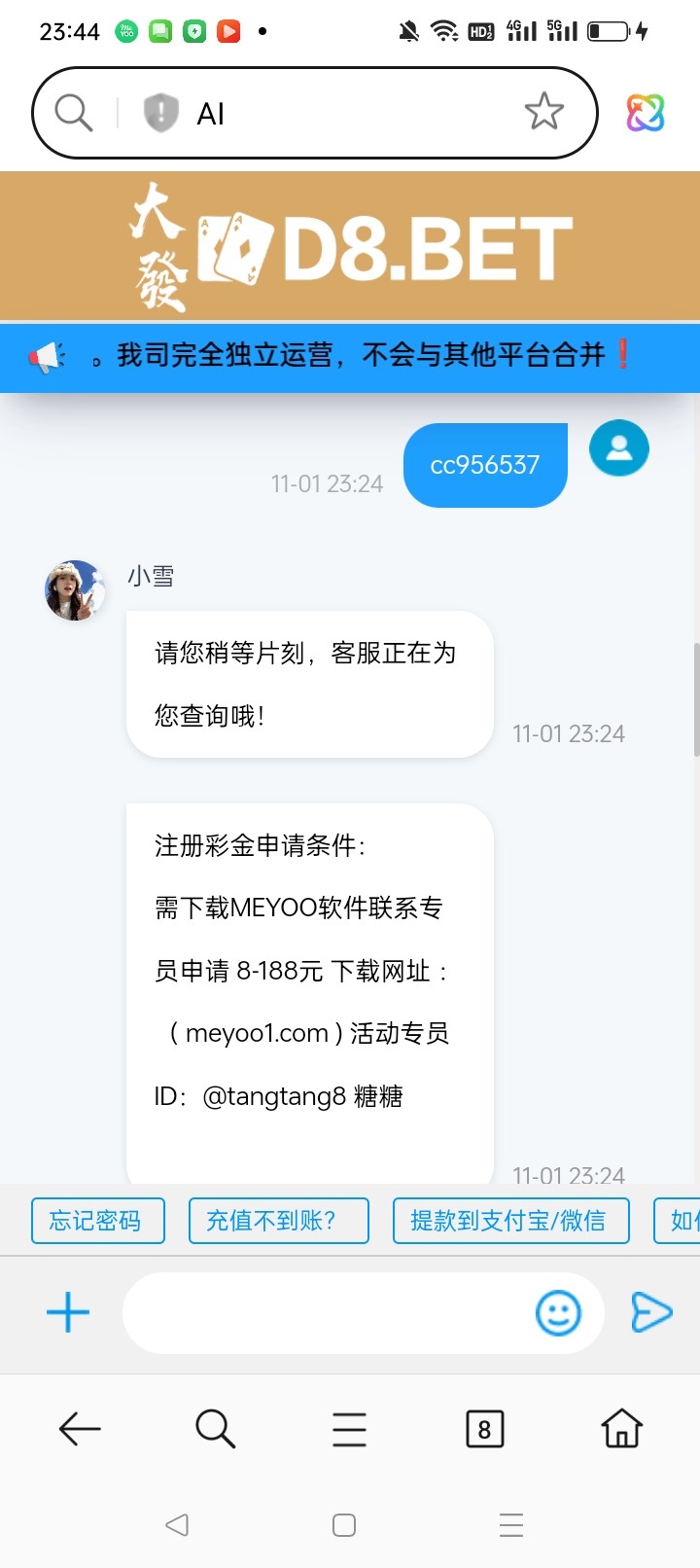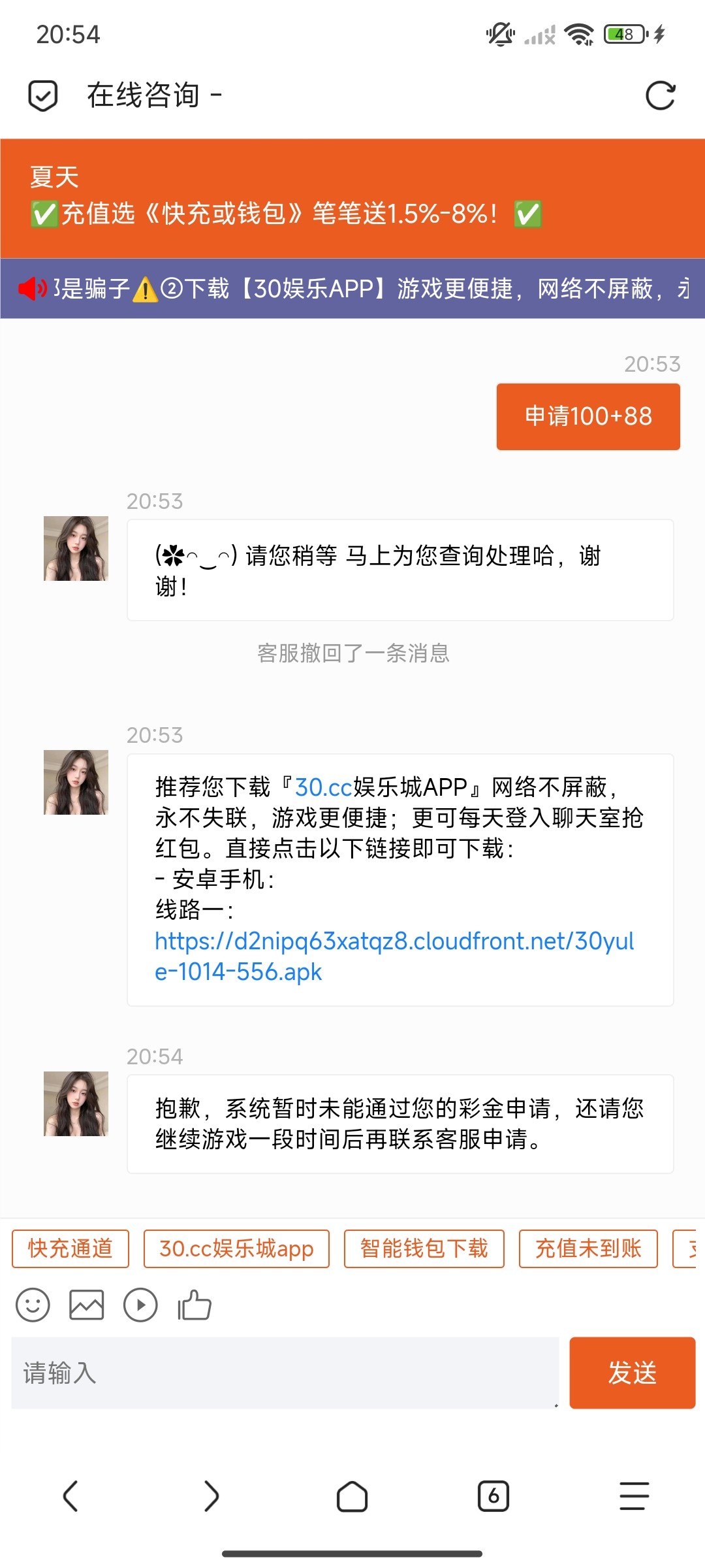 不行,说是真实用户才能申请首存,去他妈逼的煞笔客服