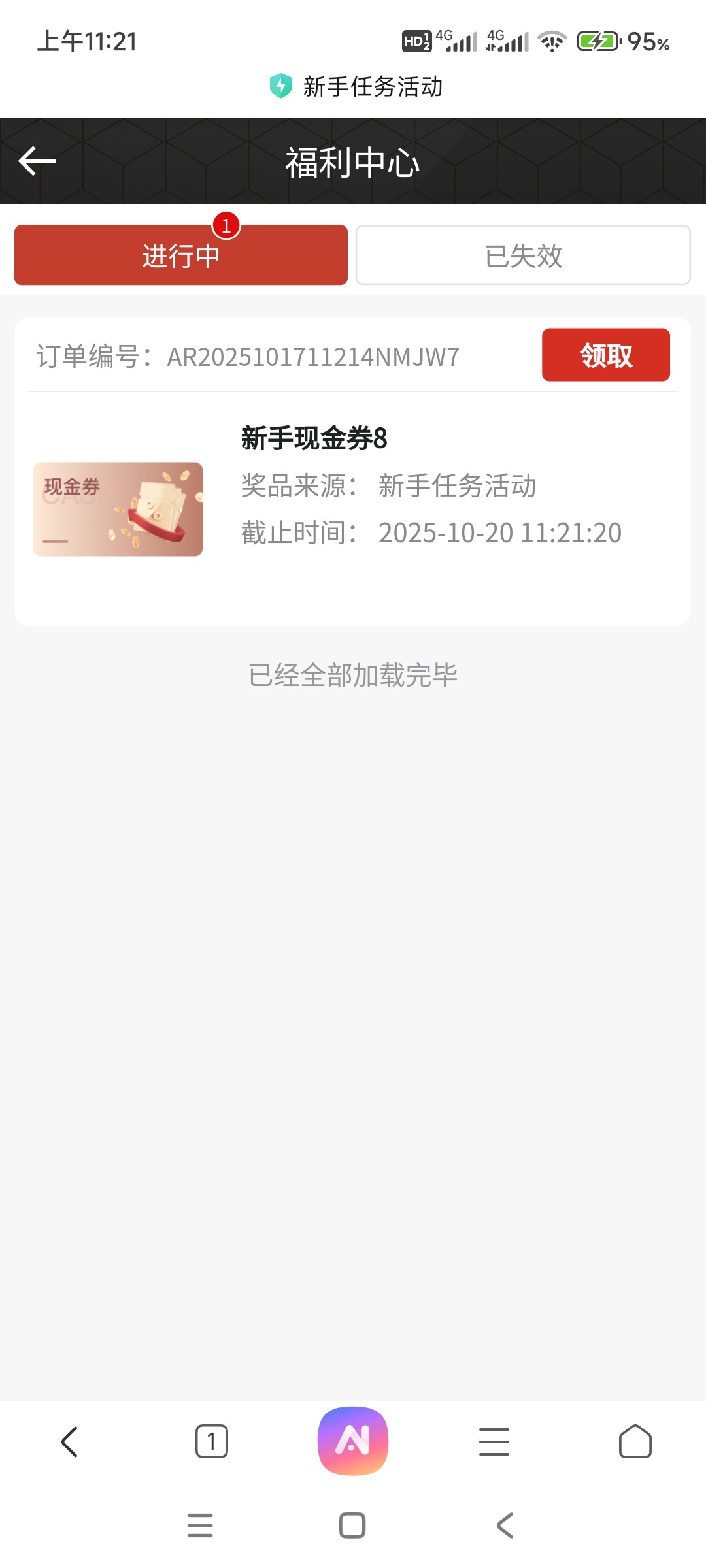 注册绑定好个人信息领取8块