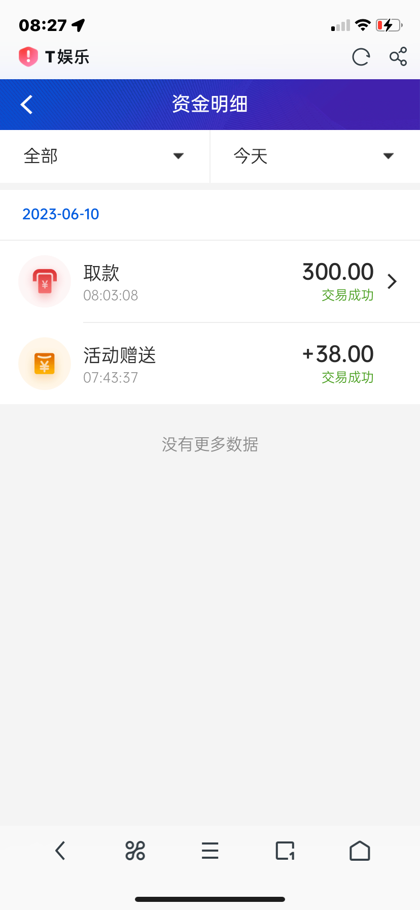 这我要跟你们反驳一下了。 我送的38。 达到400多。 直接提现了300。 留100多在号上随便玩。 我已经到了。