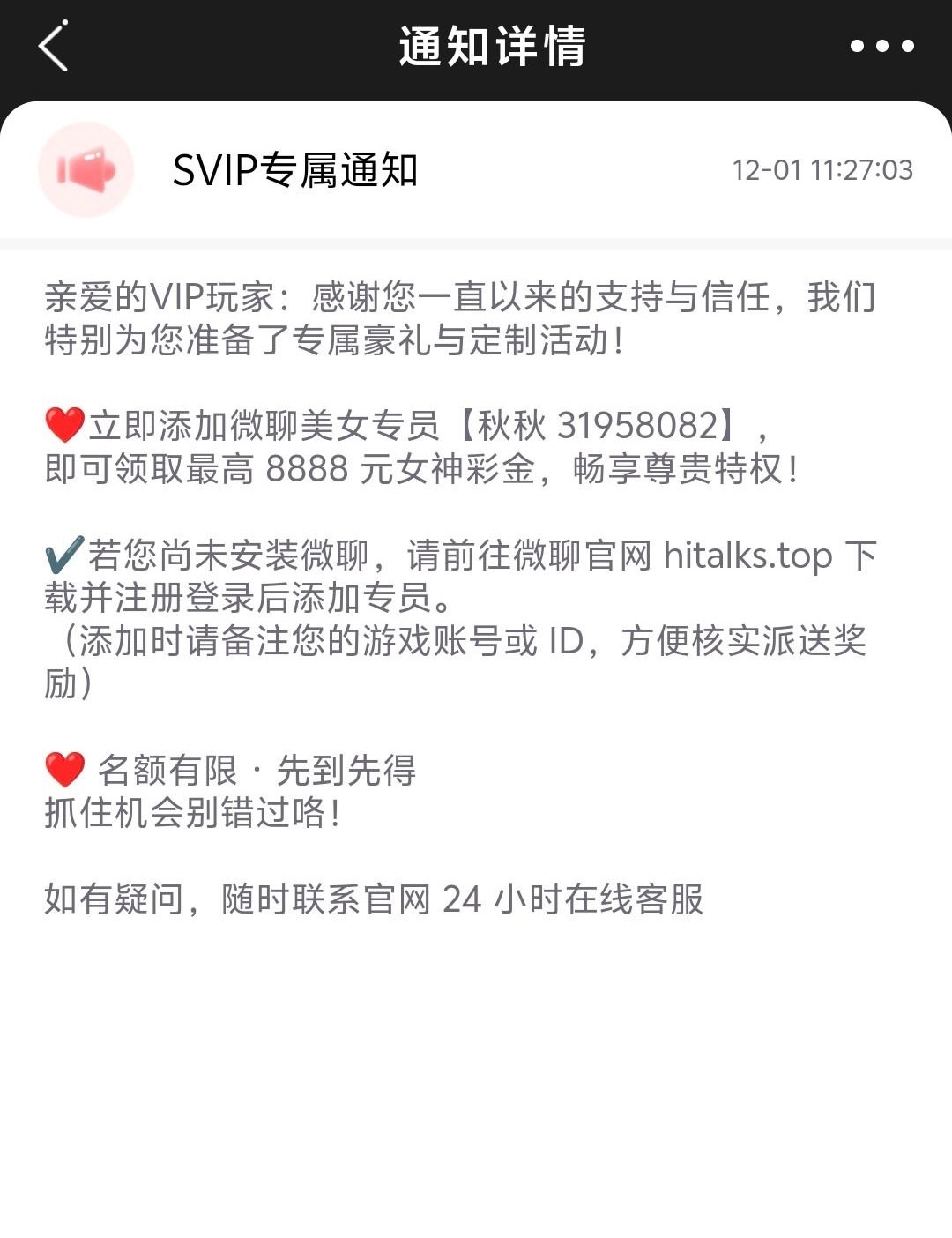 有号的去看看今天收到了站内信 联系聊天室客服送了18