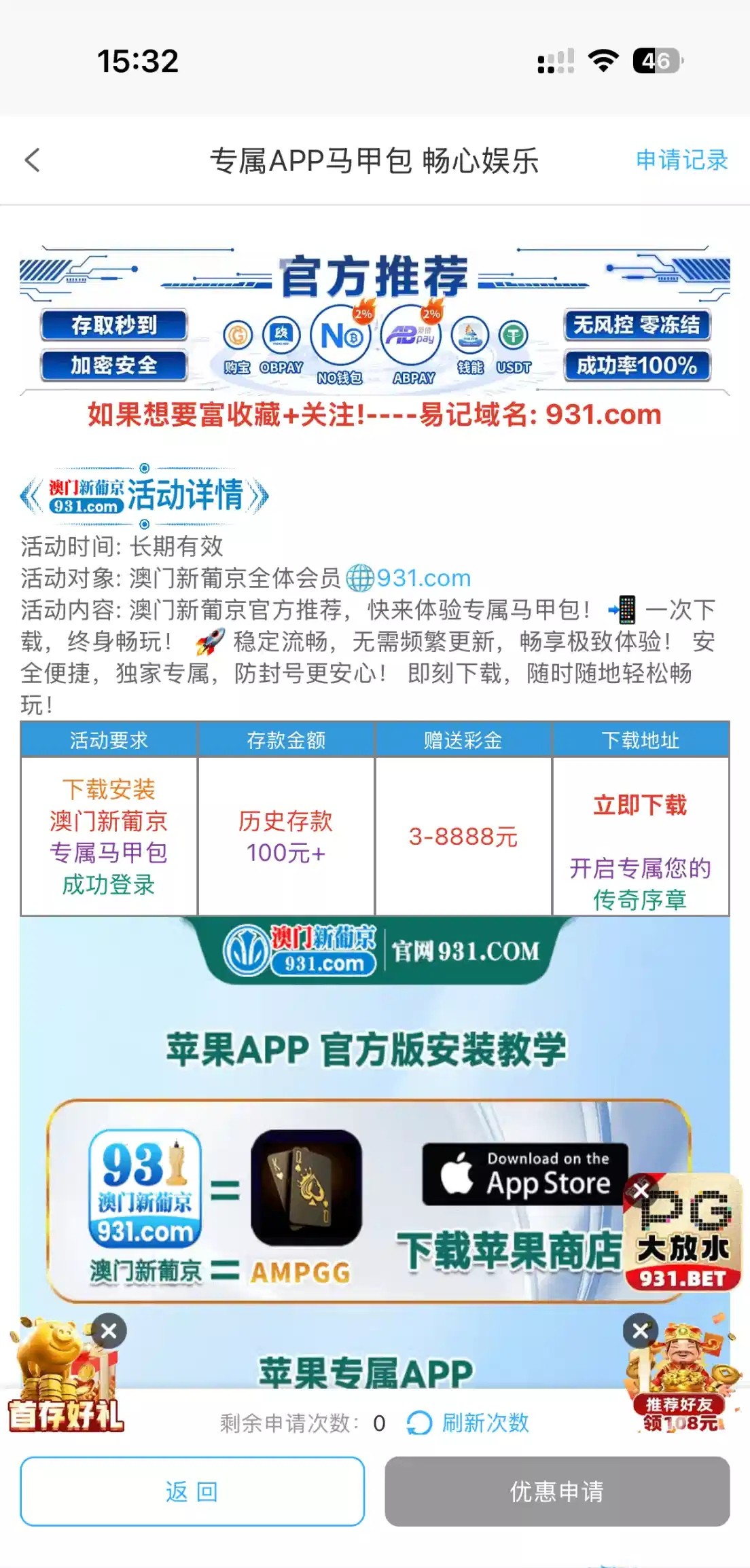 有号看活动符合的申请一下 太扣了 充几千就给6块链接931.com