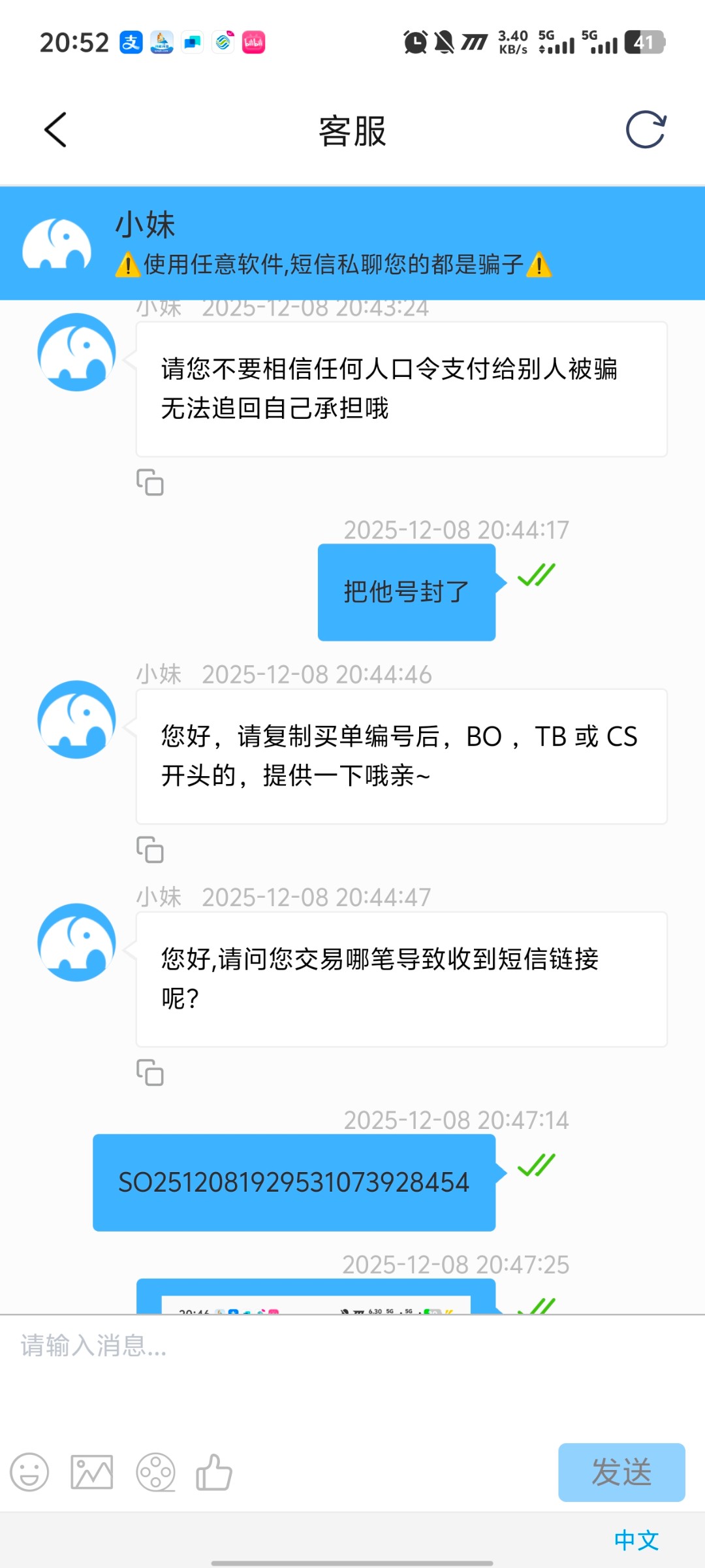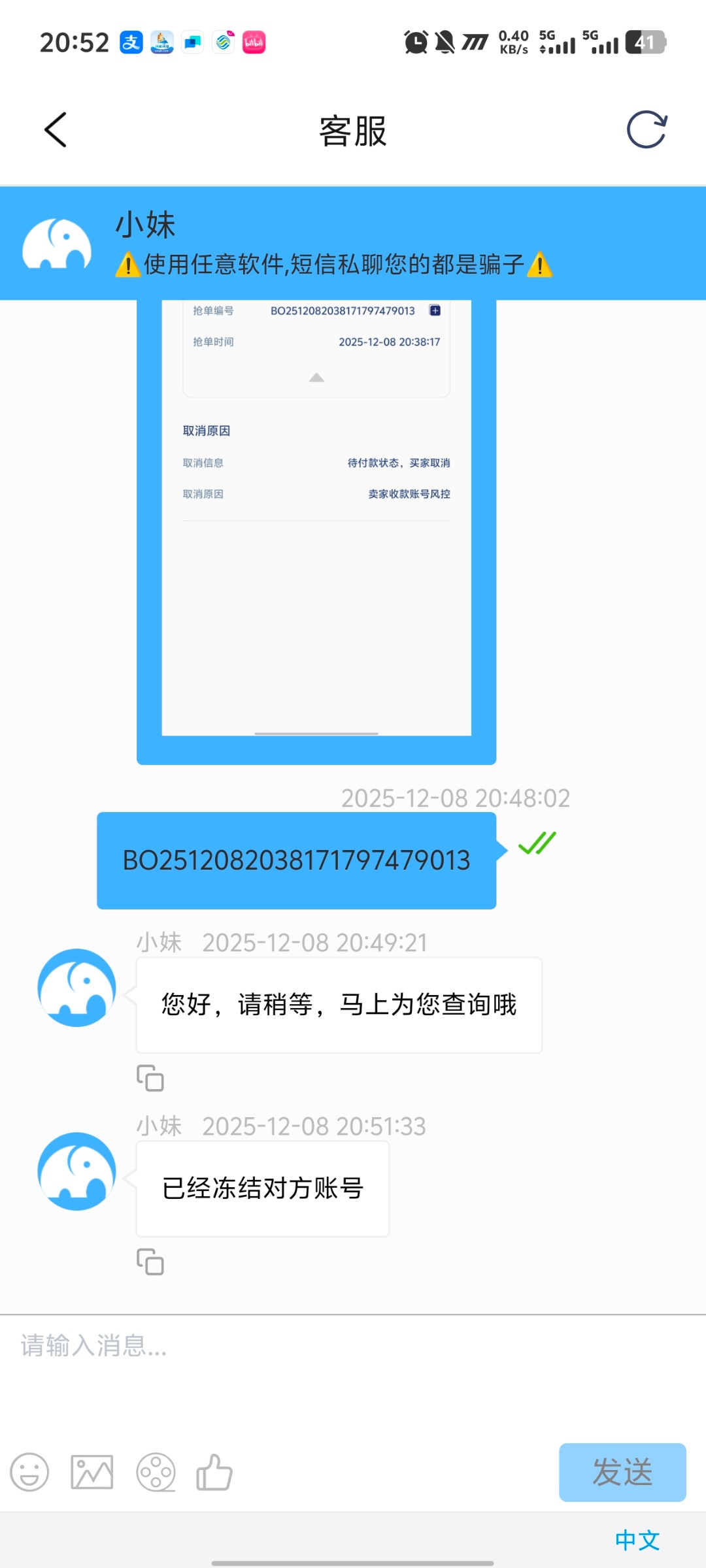 去卖币 刚上架有个人全给我秒了 过了两三分钟说我ZFB封控取消订单然后byd就给我转1分钱私发消息给我冒充客服 老哥们注意了