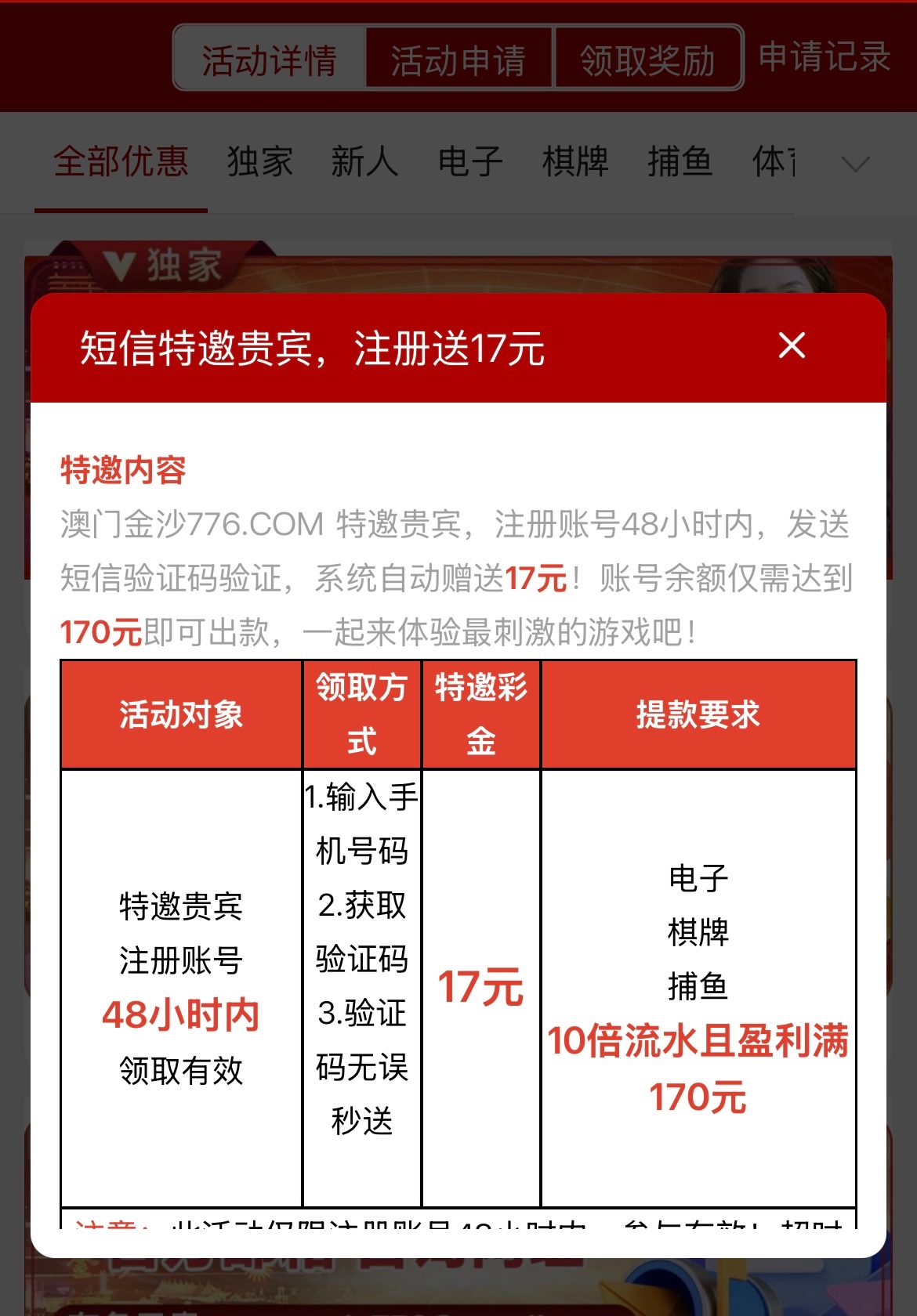 新用户注册输入手机号码获取验证码看看是不是特邀 限制十倍流水 最低170提现