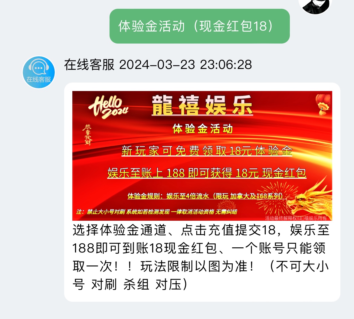 微信扫码自助领取18体验金打到188下18现金