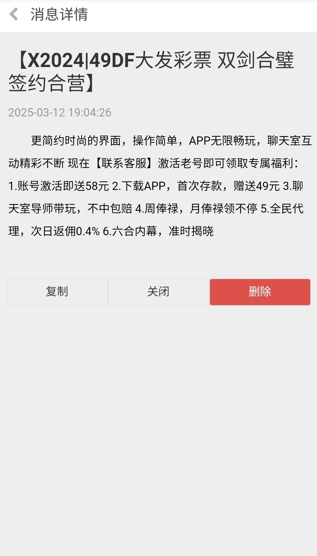 之前x2024有账号的登入看看站内信有的,找49DF客服激活送了58,实测秒到,提款几分钟就到账了